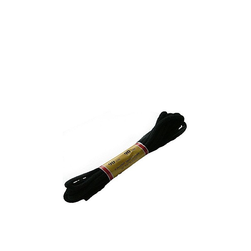 Czarne bawełniane okrągłe grube sznurówki do butów. Długość sznurowadeł 90 cm. Idealne do nawlekania przy 10-12 oczkach w cholewce obuwiowej. Grubość 5 mm.