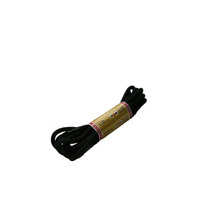 Czarne bawełniane okrągłe grube sznurówki do butów. Długość sznurowadeł 120 cm. Idealne do nawlekania przy 12-14 oczkach w cholewce obuwiowej. Grubość 5 mm.