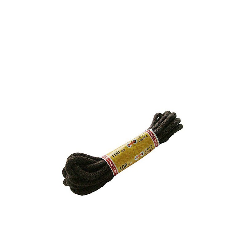 Ciemnobrązowe okrągłe grube, bawełniane sznurowadła do obuwia. Długość sznurowadeł 100 cm. Idealne do nawlekania przy 10-12 oczkach w cholewce obuwiowej