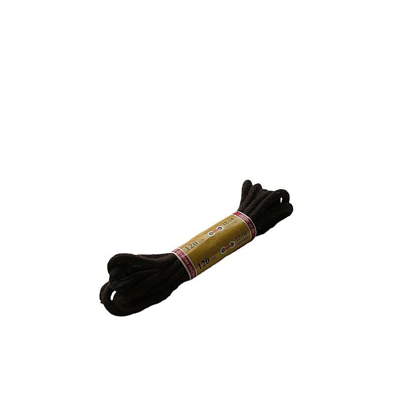 Ciemnobrązowe bawełniane okrągłe grube sznurówki do butów. Długość sznurowadeł 120 cm. Idealne do nawlekania przy 12-14 oczkach w cholewce obuwiowej. Grubość 5 mm