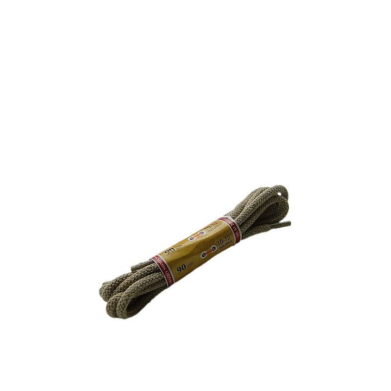 Beżowe bawełniane okrągłe grube sznurówki do butów. Długość sznurowadeł 90 cm. Idealne do nawlekania przy 10-12 oczkach w cholewce obuwiowej. Grubość 5 mm.
